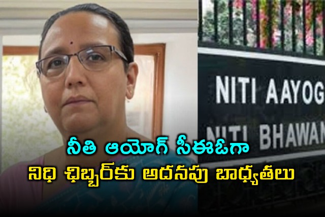 కేంద్ర ప్రభుత్వ విధాన రూపకల్పనలో కీలకమైన నీతి ఆయోగ్ ముఖ్య కార్యనిర్వహణాధికారి (సీఈఓ)గా సీనియర్ ఐఏఎస్ అధికారిణి నిధి ఛిబ్బర్‌కు కేంద్ర ప్రభుత్వం అదనపు బాధ్యతలు అప్పగించింది. ప్రస్తుత సీఈఓ బీవీఆర్ సుబ్రహ్మణ్యం మూడేళ్ల పదవీకాలం మంగళవారంతో ముగియడంతో ఈ మేరకు ఉత్తర్వులు జారీ అయ్యాయి.