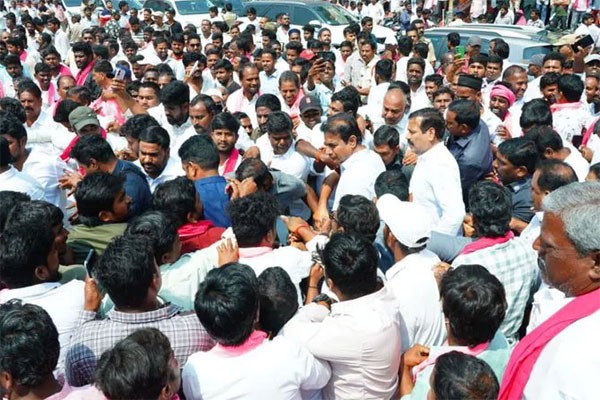 నాగర్‌కర్నూల్‌లో ఉద్రిక్తత.. బాధితులతో కలిసి కేటీఆర్ ధర్నా