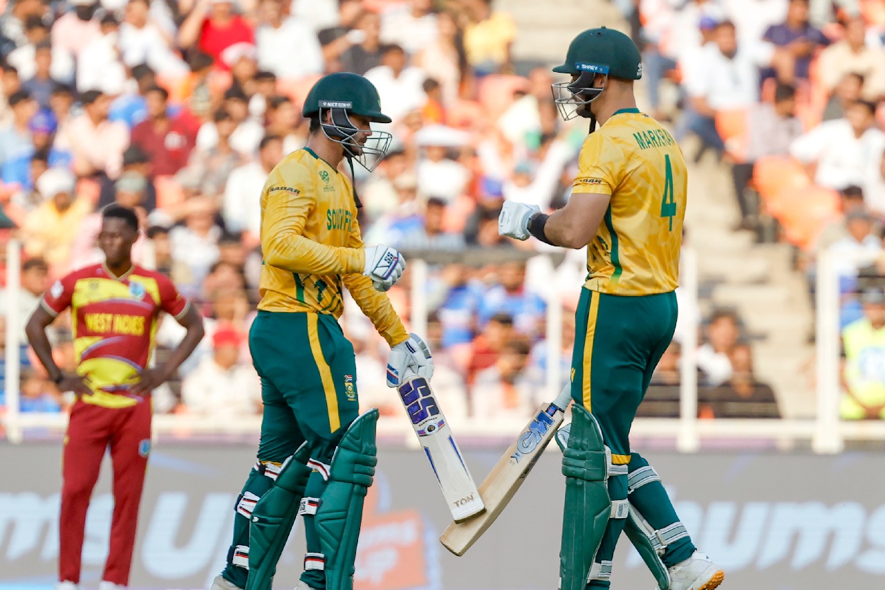 అనంతరం 177 పరుగుల లక్ష్యంతో బరిలోకి దిగిన దక్షిణాఫ్రికాకు ఓపెనర్లు అదిరిపోయే ఆరంభాన్నిచ్చారు. విండీస్ బౌలర్లపై పూర్తి ఆధిపత్యం చెలాయిస్తూ స్కోరు బోర్డును పరుగులు పెట్టించారు. కేవలం 16.1 ఓవర్లలోనే ఒక వికెట్ మాత్రమే కోల్పోయి లక్ష్యాన్ని ఛేదించారు. మరో 23 బంతులు మిగిలి ఉండగానే భారీ విజయాన్ని తమ ఖాతాలో వేసుకున్నారు. క్వింటన్ డికాక్ కేవలం 24 బంతుల్లో 4 ఫోర్లు, 4 సిక్సర్లతో 47 పరుగులు చేసి ఔటయ్యాడు. ఆ తర్వాత కెప్టెన్ ఐడెన్ మార్క్రమ్ (46 బంతుల్లో 82 నాటౌట్), ర్యాన్ రికెల్టన్ (28 బంతుల్లో 45 నాటౌట్) ఆకాశమే హద్దుగా చెలరేగారు. వీరిద్దరూ కలిసి మరో వికెట్ పడకుండా కేవలం 16.1 ఓవర్లలోనే లక్ష్యాన్ని ఛేదించి జట్టుకు ఘనవిజయాన్ని అందించారు. ఈ టోర్నీలో సఫారీలకు ఇది వరుసగా ఆరో విజయం కావడం విశేషం.