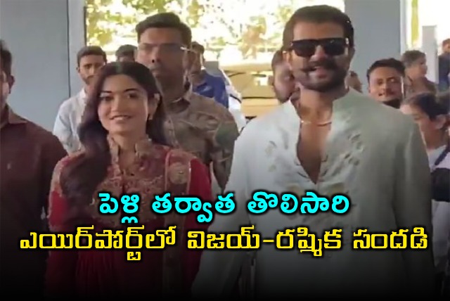 టాలీవుడ్ స్టార్ కపుల్ విజయ్ దేవరకొండ, రష్మిక మందన్న వివాహం తర్వాత తొలిసారిగా కెమెరాల కంటపడ్డారు. పెళ్లయిన మరుసటి రోజు ఈ నూతన వధూవరులు ఉదయ్‌పూర్ ఎయిర్‌పోర్ట్‌లో ప్రత్యక్షమై సందడి చేశారు. కొత్త పెళ్లికూతురుగా రష్మిక ఎరుపు రంగు సంప్రదాయ దుస్తుల్లో మెరిసిపోగా, విజయ్ దేవరకొండ స్టైలిష్ ఇండో-వెస్ట్రన్ దుస్తుల్లో రాజసంగా కనిపించారు.