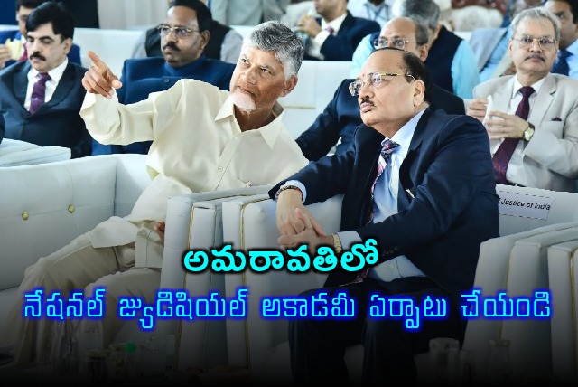 ఆంధ్రప్రదేశ్ రాజధాని అమరావతిలో ప్రతిష్టాత్మక నేషనల్ జ్యుడిషియల్ అకాడమీని ఏర్పాటు చేయాలని ముఖ్యమంత్రి చంద్రబాబు భారత ప్రధాన న్యాయమూర్తి (సీజేఐ) జస్టిస్ సూర్యకాంత్‌ను కోరారు. అమరావతిలో నిర్మిస్తున్న 'జస్టిస్ సిటీ'ని దేశంలోనే అత్యుత్తమ మోడల్‌గా తీర్చిదిద్దేందుకు కృషి చేస్తున్నామని, దీనికి న్యాయ వ్యవస్థ సహకారం కావాలని ఆయన ఆకాంక్షించారు. ఆదివారం విజయవాడలో ఏపీ స్టేట్ లీగల్ సర్వీసెస్ అథారిటీ ఆధ్వర్యంలో ‘మధ్యవర్తిత్వం’పై జరిగిన రాష్ట్రస్థాయి సదస్సులో ముఖ్యమంత్రి ముఖ్య అతిథిగా పాల్గొన్నారు. ఈ కార్యక్రమానికి హాజరైన సీజేఐ జస్టిస్ సూర్యకాంత్‌కు సీఎం చంద్రబాబు, ఏపీ హైకోర్టు ప్రధాన న్యాయమూర్తి జస్టిస్ ధీరజ్ సింగ్ ఠాకూర్ సాదర స్వాగతం పలికారు.