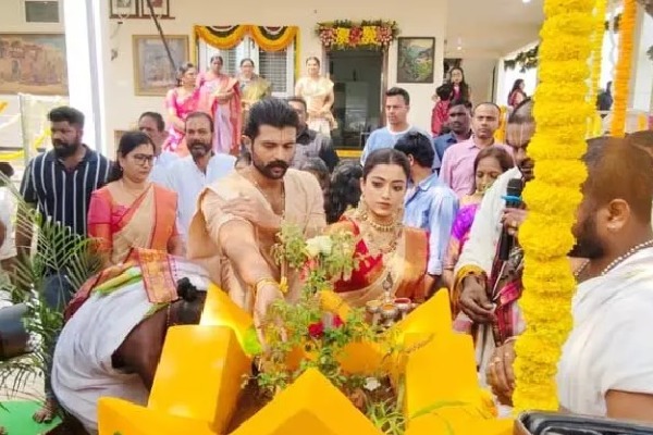 టాలీవుడ్ క్రేజీ కపుల్ విజయ్ దేవరకొండ - రష్మిక మందన్నల రాకతో నాగర్కర్నూల్ జిల్లా బల్మూరు మండలం తుమ్మెన్ పేట గ్రామం పులకించిపోతోంది. విజయ్ స్వగ్రామంలో ఈ నూతన దంపతులు డప్పు వాయిద్యాలు, మంగళ వాయిద్యాల నడుమ అత్యంత వైభవంగా తులసిమాతకు ప్రత్యేక పూజలు నిర్వహించారు. పెళ్లి తర్వాతి ఆచారాల్లో భాగంగా వేద పండితుల మంత్రోచ్చారణల మధ్య వీరు సత్యనారాయణ స్వామి వ్రత కార్యక్రమంలో ఆసీనులయ్యారు. ఈ వేడుకను కళ్లారా చూసేందుకు అచ్చంపేట నియోజకవర్గంలోని వివిధ రాజకీయ పార్టీల ముఖ్య నేతలతో పాటు గ్రామానికి చెందిన సుమారు 400 మంది అతిథులు హాజరయ్యారు. విజయ్-రష్మికల రాకతో తుమ్మెన్ పేటలో పండుగ వాతావరణం నెలకొంది. తమ అభిమాన నటులను చూడటానికి చుట్టుపక్కల గ్రామాల నుంచి ప్రజలు పెద్ద ఎత్తున తరలివచ్చారు.