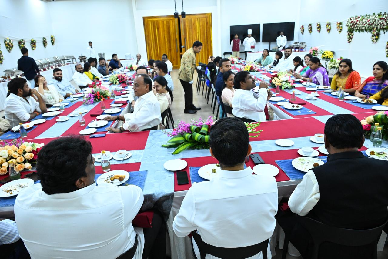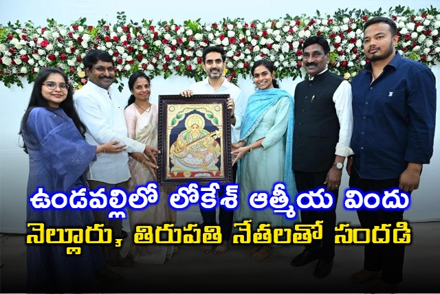 విద్య, ఐటీశాఖల మంత్రి నారా లోకేశ్ మంగళవారం రాత్రి ఉండవల్లిలోని తన నివాసంలో నెల్లూరు, తిరుపతి పార్లమెంటు నియోజకవర్గాల ప్రజాప్రతినిధులకు ఆత్మీయ విందు ఇచ్చారు. ఈ కార్యక్రమం రాజకీయాలకు దూరంగా, ఒక కుటుంబ వేడుకలా ఆద్యంతం సందడిగా సాగింది. ప్రజాప్రతినిధులు తమ కుటుంబ సభ్యులతో కలిసి ఈ విందులో పాల్గొన్నారు.