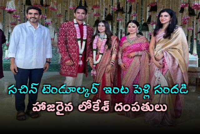 ముంబయిలోని ప్రఖ్యాత సెయింట్ రెజిస్ హోటల్లో అర్జున్ టెండూల్కర్, సానియా చందోక్ల వివాహం ఘనంగా జరిగింది. ఈ కార్యక్రమానికి హాజరైన లోకేశ్, బ్రహ్మణి దంపతులకు సచిన్ టెండూల్కర్ కుటుంబం సాదరంగా స్వాగతం పలికింది. ఈ సందర్భంగా నూతన వధూవరులను లోకేశ్ దంపతులు మనస్ఫూర్తిగా ఆశీర్వదించారు. వారికి పుష్పగుచ్ఛం అందించి శుభాకాంక్షలు తెలియజేశారు. ఈ వివాహ మహోత్సవానికి దేశంలోని క్రీడా, రాజకీయ, వ్యాపార రంగాలకు చెందిన పలువురు ప్రముఖులు హాజరై కొత్త జంటకు శుభాకాంక్షలు తెలిపారు.