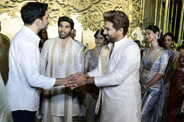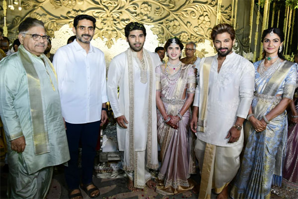 ఈ వివాహ మహోత్సవానికి టాలీవుడ్కు చెందిన పలువురు సినీ ప్రముఖులతో పాటు రాజకీయ రంగ నేతలు కూడా పెద్ద సంఖ్యలో తరలివచ్చారు. నూతన దంపతులకు తమ శుభాకాంక్షలు తెలిపి, అల్లు అరవింద్ కుటుంబాన్ని అభినందించారు. సినీ, రాజకీయ ప్రముఖుల రాకతో వివాహ వేడుక ప్రాంగణంలో సందడి వాతావరణం నెలకొంది.
