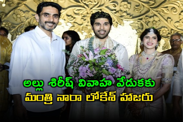 ఈ వేడుకలో మంత్రి లోకేశ్ పాల్గొని, నూతన వధూవరులు అల్లు శిరీష్, నయనికలను ఆశీర్వదించారు. వారికి పుష్పగుచ్ఛం అందించి శుభాకాంక్షలు తెలిపారు. అల్లు శిరీష్, ఐకాన్ స్టార్ అల్లు అర్జున్ సోదరుడు అన్న విషయం తెలిసిందే.