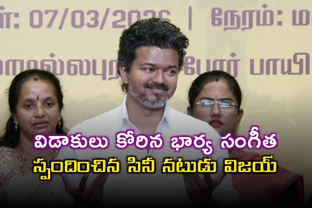 తన భార్య విడాకులు కోరుతూ కోర్టును ఆశ్రయించడంపై ప్రముఖ తమిళ సినీ నటుడు, టీవీకే పార్టీ అధ్యక్షుడు విజయ్ స్పందించారు. నా వ్యక్తిగత విషయాలు మిమ్మల్ని ఇబ్బందిపెడుతుంటే బాధగా ఉందని కార్యకర్తలను, అభిమానులను ఉద్దేశించి అన్నారు. వాటి విషయం తాను తర్వాత చూసుకుంటానని అన్నారు. చెంగల్పట్టులో జరిగిన మహిళా దినోత్సవ కార్యక్రమంలో ఆయన పాల్గొన్నారు.