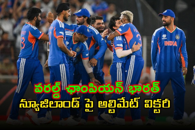 టీ20 ప్రపంచకప్ ఫైనల్లో టీమిండియా మరోసారి విశ్వరూపం చూపించింది. అహ్మదాబాద్లోని నరేంద్ర మోదీ స్టేడియం వేదికగా ఆదివారం జరిగిన తుది పోరులో న్యూజిలాండ్ను చిత్తుచేసి విశ్వవిజేతగా నిలిచింది. ఈ విజయంతో భారత్ సరికొత్త చరిత్ర సృష్టించింది. 2007, 2024 తర్వాత ఇది టీమిండియాకు మూడో టీ20 వరల్డ్ కప్ కావడం విశేషం. మూడు సార్లు టీ20 వరల్డ్ కప్ గెలిచిన తొలిజట్టుగా టీమిండియా రికార్డు నెలకొల్పింది. దాంతోపాటే, ఆతిథ్య జట్టు వరల్డ్ కప్ నెగ్గడం కూడా ఇదే తొలిసారి. అంతేకాదు, టీ20 ప్రపంచకప్ చరిత్రలో డిఫెండింగ్ ఛాంపియన్గా బరిలోకి దిగి, టైటిల్ను నిలబెట్టుకున్న తొలి జట్టుగా టీమిండియా రికార్డులకెక్కింది. సొంతగడ్డపై జరిగిన ఈ మెగా ఫైనల్లో భారత్ ఏకంగా 96 పరుగుల తేడాతో న్యూజిలాండ్పై ఘన విజయం సాధించి ట్రోఫీని ముద్దాడింది.