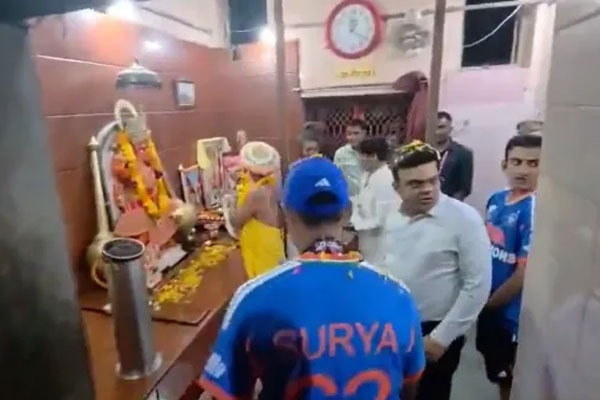 మ్యాచ్ ముగిసి, మీడియా సమావేశాలు పూర్తయిన కొన్ని గంటల్లోనే కెప్టెన్ సూర్యకుమార్ యాదవ్, హెడ్ కోచ్ గౌతమ్ గంభీర్, ఐసీసీ ఛైర్మన్ జై షా.. గెలిచిన ప్రపంచకప్ ట్రోఫీని నేరుగా నరేంద్ర మోదీ స్టేడియం పక్కనే ఉన్న హనుమాన్ టేక్రీ ఆలయానికి తీసుకెళ్లారు. అక్కడ ఆంజనేయ స్వామి పాదాల చెంత ట్రోఫీని ఉంచి ప్రత్యేక పూజలు నిర్వహించి, ఆశీస్సులు తీసుకున్నారు.