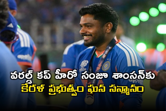 టీ20 ప్రపంచకప్‌ ఫైనల్‌లో భారత విజయంలో కీలక పాత్ర పోషించిన కేరళ స్టార్ క్రికెటర్ సంజూ శాంసన్‌కు ఆ రాష్ట్ర ప్రభుత్వం ఘనంగా సన్మానం చేయనుంది. ముఖ్యమంత్రి పినరయి విజయన్ నేతృత్వంలో భారీ బహిరంగ సభ ఏర్పాటు చేసి సంజూను సత్కరించనున్నట్లు ప్రకటించింది.