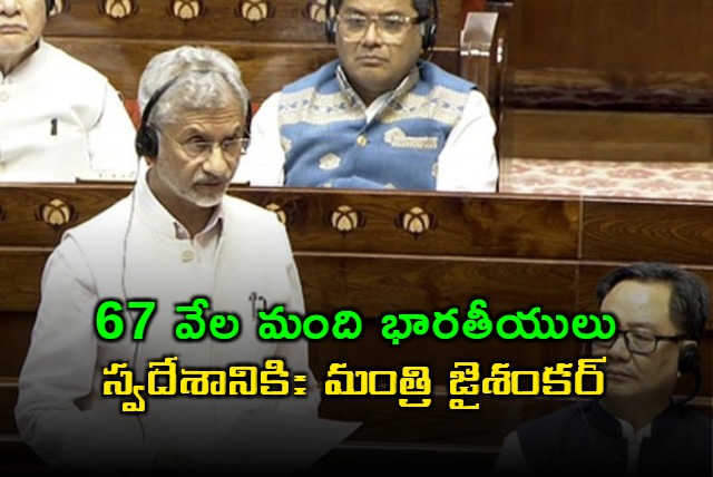 పశ్చిమాసియాలో నెలకొన్న తీవ్ర ఉద్రిక్తతల నేపథ్యంలో అక్కడి నుంచి ఇప్పటివరకు 67,000 మంది భారతీయులు సురక్షితంగా స్వదేశానికి తిరిగి వచ్చారని విదేశాంగ మంత్రి ఎస్. జైశంకర్ వెల్లడించారు. ఇవాళ ఆయన రాజ్యసభలో పశ్చిమాసియాలోని తాజా పరిణామాలపై ఒక ప్రకటన చేశారు. సంక్షోభం కొనసాగుతున్నప్పటికీ, భారతీయుల భద్రతకు, వారిని వెనక్కి తీసుకురావడానికి ప్రభుత్వం అన్ని చర్యలూ తీసుకుంటోందని స్పష్టం చేశారు.