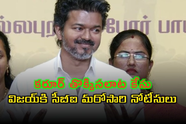 గత సంవత్సరం చోటుచేసుకున్న కరూర్ తొక్కిసలాటకు సంబంధించిన కేసులో ప్రముఖ నటుడు, టీవీకే అధినేత విజయ్‌కి కేంద్ర దర్యాప్తు సంస్థ సీబీఐ మరోసారి నోటీసులు జారీ చేసింది. ఈ నెల 10 విచారణకు హాజరు కావాలని అందులో పేర్కొంది. ఈ కేసులో విజయ్‌ని సీబీఐ గతంలో విచారించింది. తాజాగా మరోసారి విచారించడానికి సమన్లు జారీ చేసింది. జనవరి నెలలో రెండు పర్యాయాలు సీబీఐ అతనిని విచారించింది.