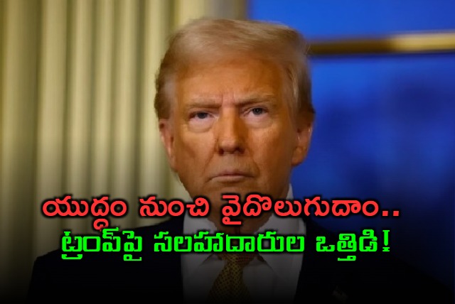 సలహాదారుల నుంచి ఒత్తిడి వస్తున్నప్పటికీ ట్రంప్ మాత్రం బయటపడకుండా తనదైన శైలిలో స్పందించారు. ‘‘మేము షెడ్యూల్ కంటే ముందే ఉన్నాం. మిలిటరీ పరంగా సాధించాల్సిన లక్ష్యాలను దాదాపుగా పూర్తి చేశాం. ఈ యుద్ధం చాలా త్వరగా ముగిసిపోతుంది’’ అని ఆయన ధీమా వ్యక్తం చేశారు. అయితే, ‘‘సంతృప్తికరమైన విజయం’’ సాధించకుండా ఆయన వెనక్కి తగ్గేలా కనిపించడంలేదని మరికొందరు అధికారులు అభిప్రాయపడుతున్నారు.