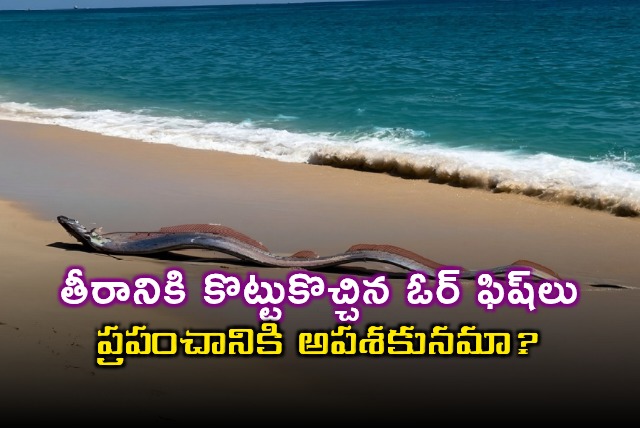 సముద్రంలో సుమారు 3,000 అడుగుల లోతులో నివసించే ఈ ఓర్ఫిష్లు సాధారణంగా ఉపరితలానికి రావడం చాలా అరుదు. పాములా పొడవుగా ఉండే ఈ చేపలను అత్యంత తీవ్రమైన అపశకునంగా భావిస్తారు.