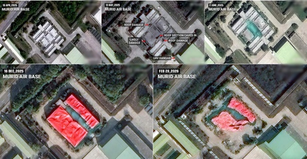 గతేడాది భారత వైమానిక దళం చేపట్టిన 'ఆపరేషన్ సిందూర్' ధాటికి పాకిస్థాన్‌లోని కీలకమైన మురిద్ ఎయిర్‌బేస్ కోలుకోలేని విధంగా దెబ్బతిన్నట్లు తాజా శాటిలైట్ చిత్రాలు స్పష్టం చేస్తున్నాయి. చక్వాల్ సమీపంలోని ఈ వ్యూహాత్మక ఎయిర్‌బేస్‌లో ధ్వంసమైన కమాండ్ అండ్ కంట్రోల్ సెంటర్‌ను పునరుద్ధరించడానికి పాక్ చేసిన ప్రయత్నాలన్నీ విఫలమయ్యాయి. ఫిబ్రవరి 28న అందిన చిత్రాల ప్రకారం, అక్కడ మరమ్మతులకు బదులుగా భవనాన్ని పూర్తిగా కూల్చివేస్తున్నట్లు ఆనవాళ్లు కనిపిస్తున్నాయి.