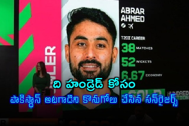 ది హండ్రెజ్ టోర్నీలో భాగంగా 'సన్రైజర్స్' పాకిస్థాన్ స్టార్ ఆటగాడిని జట్టులోకి తీసుకుంది. ఇంగ్లాండ్ అండ్ వేల్స్ క్రికెట్ బోర్డు నిర్వహించనున్న 'ది హండ్రెడ్' టోర్నీకి ''సన్రైజర్స్ లీడ్స్' జట్టు అతడిని తీసుకుంది. ది హండ్రెడ్ కోసం వేలం నిర్వహిస్తున్నారు. మన ఐపీఎల్ ఫ్రాంచైజీలకు అక్కడ కూడా జట్లు ఉన్నాయి. ఈ క్రమంలో సన్రైజర్స్ లీడ్స్ జట్టు పాక్ లెగ్ స్పిన్నర్ అబ్రార్ అహ్మద్తో రూ.2.34 కోట్లకు కాంట్రాక్టును కుదుర్చుకుంది.