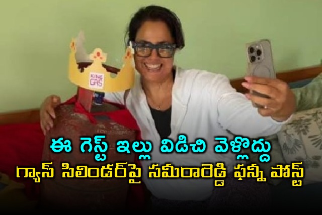 Sameera Reddy: ఈ గెస్ట్ ఇల్లు విడిచి వెళ్లొద్దు... గ్యాస్ సిలిండర్పై సమీరారెడ్డి ఫన్నీ పోస్ట్