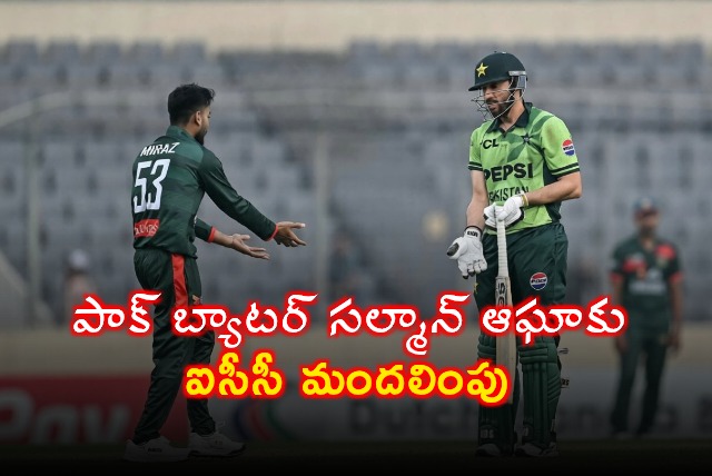 బంగ్లాదేశ్‌తో జరిగిన రెండో వన్డేలో పాకిస్థాన్ బ్యాటర్ సల్మాన్ ఆఘా ఐసీసీ చర్యలకు గురయ్యాడు. విచిత్ర రీతిలో రనౌట్ కావడంపై అసహనం వ్యక్తం చేస్తూ క్రికెట్ పరికరాలను దురుసుగా విసిరికొట్టినందుకు అతడిని మందలించడంతో పాటు, ఒక డిమెరిట్ పాయింట్‌ను జతచేశారు. శుక్రవారం షేర్-ఎ-బంగ్లా స్టేడియంలో ఈ ఘటన చోటుచేసుకుంది.