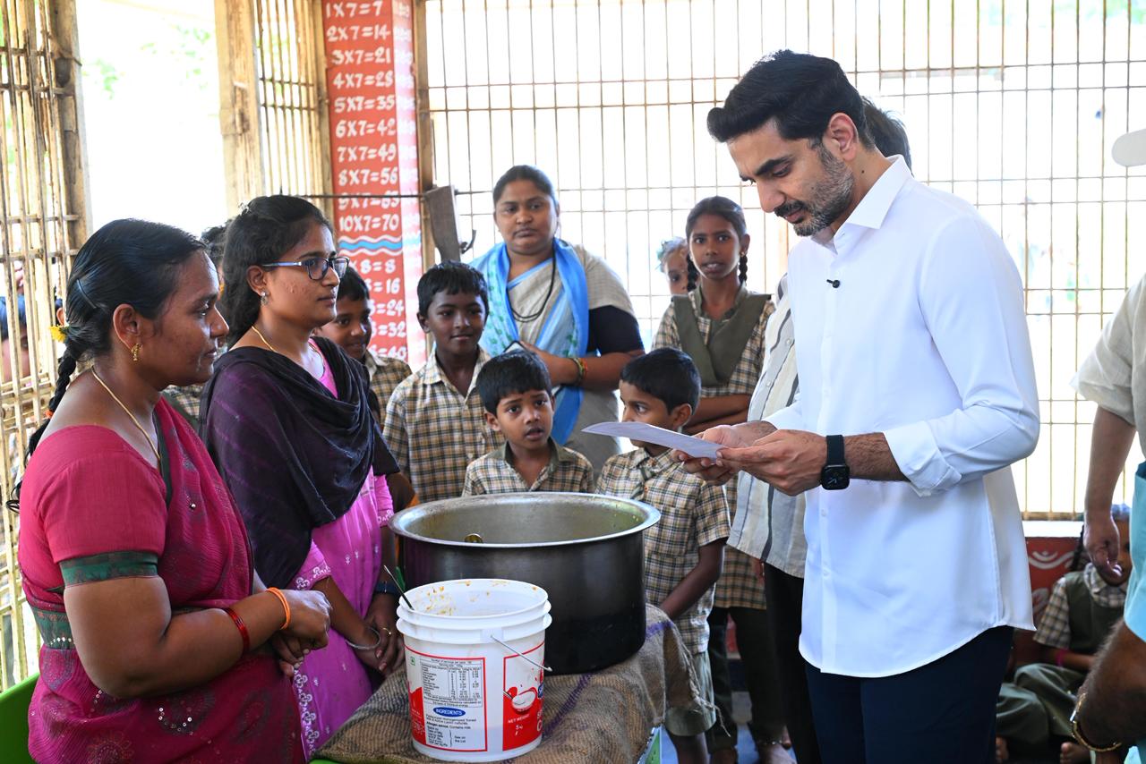 మధ్యాహ్న భోజనం నాణ్యత బాగోలేదన్న ఆరోపణల నేపథ్యంలో, విద్యాశాఖ మంత్రి నారా లోకేశ్ రంగంలోకి దిగారు. ఎన్టీఆర్ జిల్లా మైలవరంలోని ఓ ప్రభుత్వ పాఠశాలలో ఆయన ఆకస్మికంగా తనిఖీ చేశారు. ఈ సందర్భంగా విద్యార్థులతో కలిసి భోజనం చేసి, ఆహార నాణ్యతను స్వయంగా పరిశీలించారు.