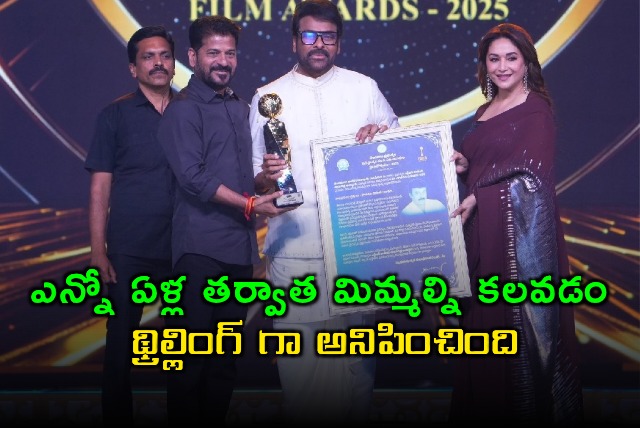 ఈ నేపథ్యంలో, చిరంజీవి ఇవాళ సోషల్ మీడియా వేదికగా తన ఆనందాన్ని పంచుకున్నారు. ముఖ్యంగా, మాధురి దీక్షిత్‌ను కలవడంపై ఆయన ప్రత్యేకంగా స్పందించారు. "ఎన్నో ఏళ్ల తర్వాత మిమ్మల్ని కలవడం చాలా సంతోషంగా ఉంది మాధురి దీక్షిత్ గారూ. మీరు ఈ కార్యక్రమానికి విచ్చేసి, ఎన్టీఆర్ జాతీయ పురస్కార ప్రదానాన్ని మరింత ప్రత్యేకంగా మార్చారు. కాలం ముందుకు సాగినా, తెరపై, బయట మీ అందం, ఆకర్షణ, ఆప్యాయత ఎప్పటికీ నిలిచి ఉంటాయి" అని చిరంజీవి తన పోస్టులో పేర్కొన్నారు.