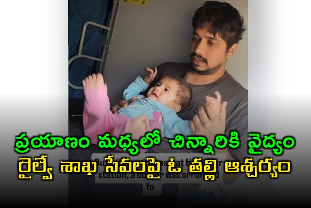 బెంగళూరు నుంచి గుజరాత్ వెళుతున్న రైలులో అనారోగ్యానికి గురైన తన చిన్నారికి భారతీయ రైల్వే శాఖ అద్భుతమైన రీతిలో సహాయం అందించిందని ఓ తల్లి సోషల్ మీడియా వేదికగా ప్రశంసలు కురిపించారు. ఈ హృద్యమైన ఘటనకు సంబంధించిన వీడియోను ఆమె ఇన్‌స్టాగ్రామ్‌లో పంచుకోగా, అది ప్రస్తుతం వైరల్‌గా మారింది.