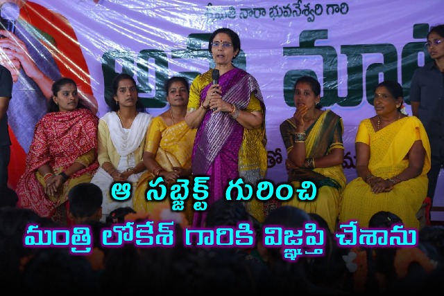 Nara Bhuvaneswari: ఆ సబ్జెక్ట్ గురించి మంత్రి నారా లోకేశ్ గారికి విజ్ఞప్తి చేశాను: నారా భువనేశ్వరి