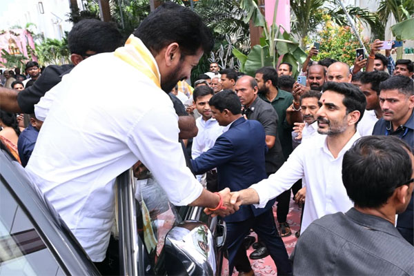 కుటుంబసభ్యులతో కలిసి వివాహానికి హాజరైన తెలంగాణ సీఎం రేవంత్ రెడ్డికి మంత్రి నారా లోకేశ్ సాదర స్వాగతం పలికారు. అనంతరం ఇద్దరు నేతలు కలిసి నూతన వధూవరులు నాగసాయి వైదీప్తి, కెవిన్ రామ్లను ఆశీర్వదించారు. పుష్పగుచ్ఛం అందించి, వైవాహిక జీవితం ఆనందంగా సాగాలని ఆకాంక్షించారు.
