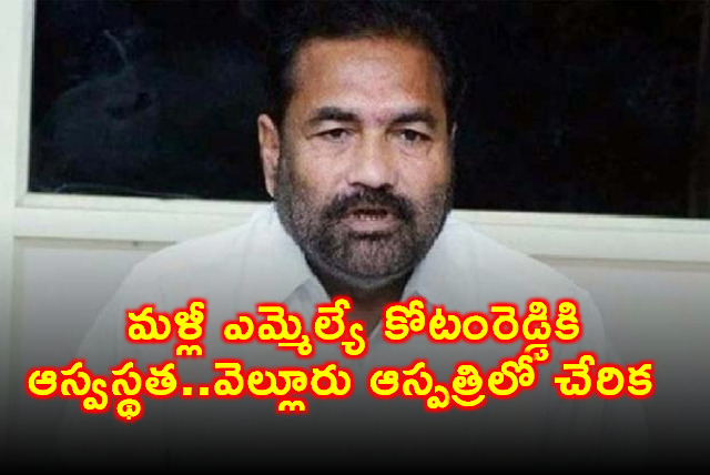 Kotamreddy Sridhar Reddy: మళ్లీ ఎమ్మెల్యే కోటంరెడ్డికి ఆస్వస్థత..వెల్లూరు ఆసుపత్రిలో చేరిక