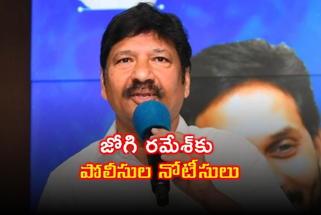 వైసీపీ నేత, మాజీ మంత్రి జోగి రమేశ్‌కు పోలీసులు నోటీసులు జారీ చేశారు. ముఖ్యమంత్రి చంద్రబాబుపై అనుచిత వ్యాఖ్యలు చేశారన్న ఆరోపణలతో బాపట్ల జిల్లా భట్టిప్రోలు పోలీస్ స్టేషన్‌లో పోలీసులు కేసు నమోదు చేయడం తెలిసిందే. ఈ మేరకు ఆయనకు నోటీసులు జారీ చేసి, వారం రోజుల్లోగా విచారణకు హాజరు కావాలని ఆదేశించారు.