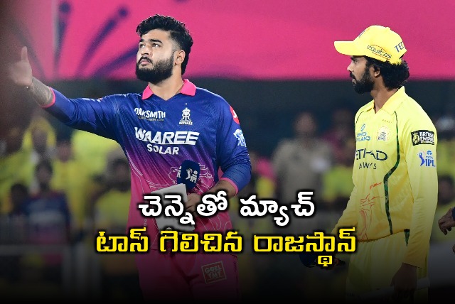 ఐపీఎల్ 2026 సీజన్లో భాగంగా గౌహతిలోని బర్సపరా క్రికెట్ స్టేడియం వేదికగా జరుగుతున్న మూడో మ్యాచ్లో రాజస్థాన్ రాయల్స్, చెన్నై సూపర్ కింగ్స్ తలపడుతున్నాయి. ఈ మ్యాచ్లో రాజస్థాన్ రాయల్స్ కెప్టెన్ రియాన్ పరాగ్ టాస్ గెలిచి ముందుగా బౌలింగ్ ఎంచుకున్నాడు. దీంతో చెన్నై సూపర్ కింగ్స్ మొదట బ్యాటింగ్ చేయనుంది.