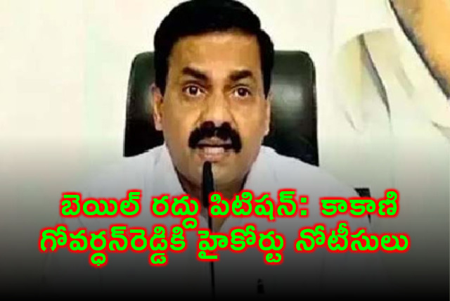 Kakani Govardhan Reddy: బెయిల్ రద్దు పిటిషన్: కాకాణి గోవర్ధన్‌రెడ్డికి హైకోర్టు నోటీసులు