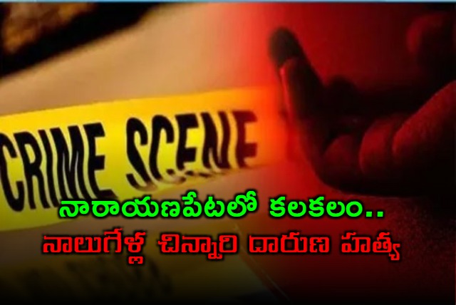 నారాయణపేట జిల్లాలో తీవ్ర విషాదం చోటుచేసుకుంది. నాలుగేళ్ల చిన్నారి దారుణ హత్యకు గురైంది. అమ్మిరెడ్డిపల్లి గ్రామంలో జరిగిన ఈ ఘటన స్థానికంగా కలకలం రేపింది. గుర్తు తెలియని వ్యక్తులు చిన్నారిని హతమార్చి, మృతదేహాన్ని గ్రామ సమీపంలోని చెరువుగట్టు వద్ద పడేసి వెళ్లారు.