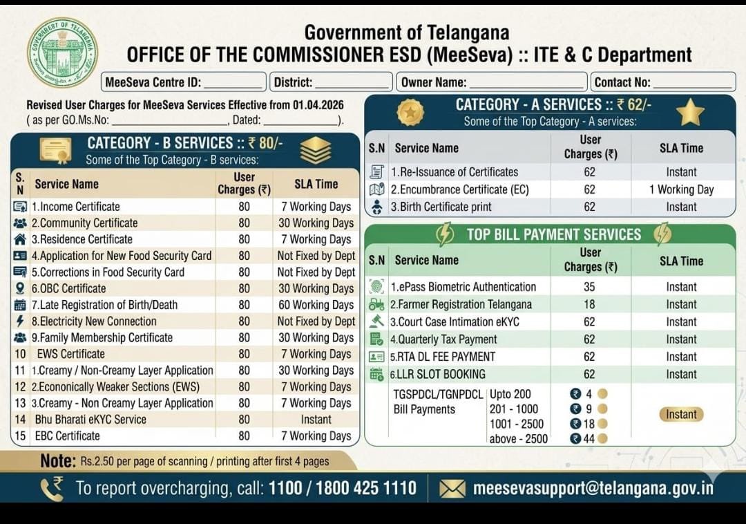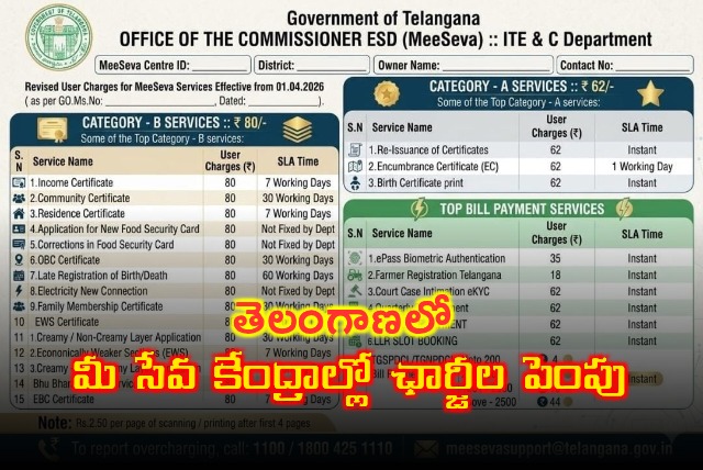 MeeSeva: తెలంగాణలో మీ సేవ కేంద్రాల్లో ఛార్జీల పెంపు.. నేటి నుంచి అమలు