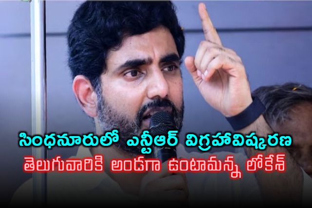 అనంతరం సింధనూరు గంగావతి రోడ్డులోని తెలుగు సంఘం కళ్యాణమండపంలో నూతనంగా ఏర్పాటు చేసిన స్వర్గీయ నందమూరి తారక రామారావు కాంస్య విగ్రహాన్ని కేంద్ర మంత్రులు కుమారస్వామి, సంజయ్ సేథ్లతో కలిసి మంత్రి లోకేశ్ ఆవిష్కరించారు. ఈ సందర్భంగా ఆయన మాట్లాడుతూ.. ఎన్టీఆర్ విగ్రహాన్ని ఏర్పాటు చేసిన నిర్వాహకులను అభినందించారు.