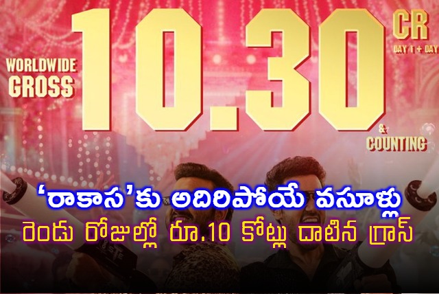 యంగ్ హీరో సంగీత్ శోభన్, నయన్ సారిక జంటగా నటించిన హారర్ కామెడీ చిత్రం 'రాకాస' బాక్సాఫీస్ వద్ద మంచి వసూళ్లను రాబడుతోంది. విడుదలైన తొలి రెండు రోజుల్లోనే ఈ సినిమా ప్రపంచవ్యాప్తంగా రూ. 10.30 కోట్ల గ్రాస్ సాధించినట్లు చిత్ర నిర్మాణ సంస్థ అధికారికంగా ప్రకటించింది.