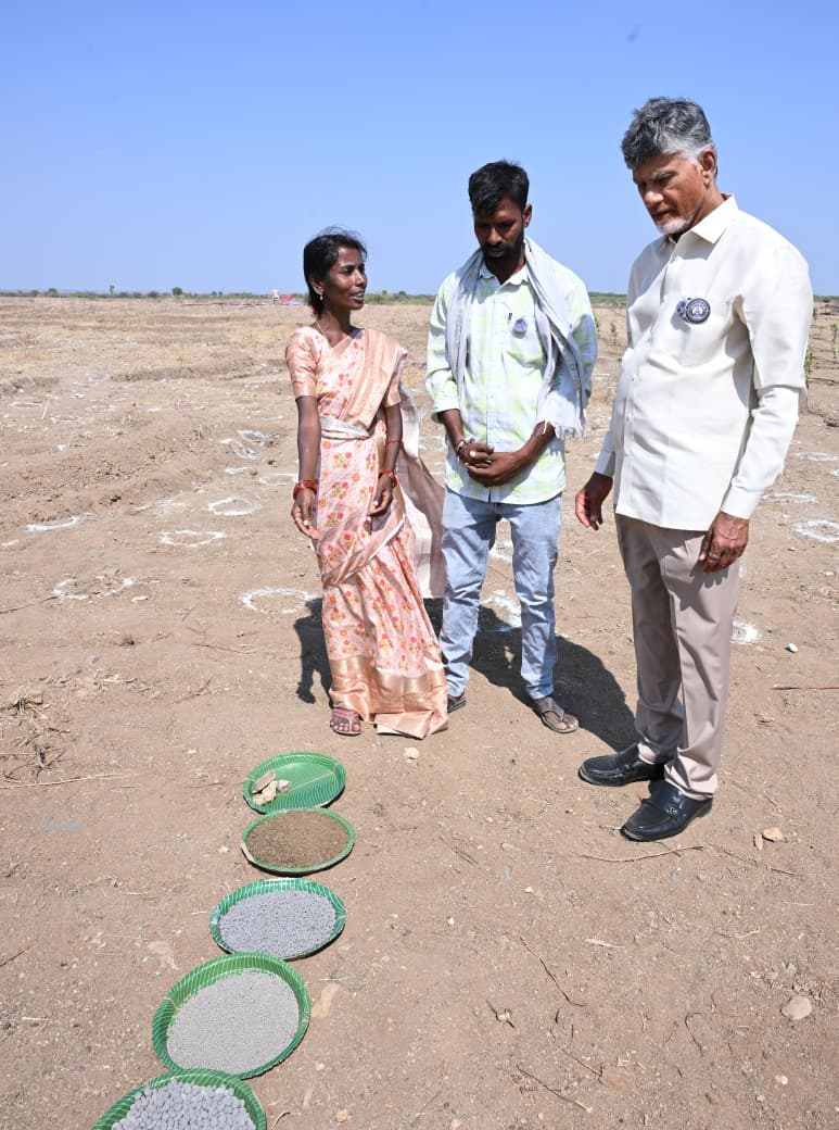 అలాగే, ‘ప్రీమాన్ సూన్ డ్రై సోయింగ్’ విధానం ద్వారా సాగు చేయడం వల్ల పెట్టుబడి ఖర్చులు గణనీయంగా తగ్గుతున్నాయని హరికృష్ణ, దేవి అనే రైతులు సీఎం దృష్టికి తీసుకొచ్చారు. పొలాల్లో అర్ధచంద్రాకార గుంతలు తవ్వడం ద్వారా నేల సారం పెరిగి మంచి ఫలితాలు వస్తున్నాయని నందిని, ప్రమీలమ్మ అనే మహిళా రైతులు ముఖ్యమంత్రికి వివరించారు. ఉపాధి హామీ, ప్రకృతి వ్యవసాయం వంటి పలు అంశాలపై కూడా సీఎం రైతులతో చర్చించారు.