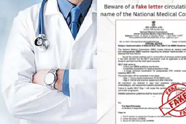 వివరాల్లోకి వెళ్తే, ఎన్ఎంసీ పేరుతో ఏప్రిల్ 1వ తేదీతో ఉన్న ఓ లేఖ దేశవ్యాప్తంగా ప్రచారంలోకి వచ్చింది. 2022 బ్యాచ్ నుంచి ఎంబీబీఎస్ విద్యార్థులకు 'నెక్స్ట్' పరీక్షను అమలు చేస్తున్నట్లు ఆ లేఖలో తప్పుగా పేర్కొన్నారు. ఫైనల్ ఇయర్ అర్హత పరీక్షగా, వైద్య ప్రాక్టీస్కు లైసెన్స్ పరీక్షగా, నీట్-పీజీ ప్రవేశ పరీక్ష స్థానంలో ఈ పరీక్ష ఉంటుందని అందులో తెలిపారు. రెండు దశల్లో ఈ పరీక్ష ఉంటుందని కూడా వివరించారు.