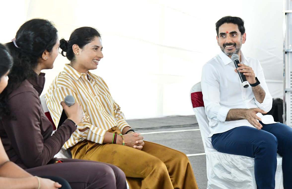 - పీవీ సింధు, కిదాంబి శ్రీకాంత్తో కలిసి బ్యాడ్మింటన్ ఆడిన లోకేశ్