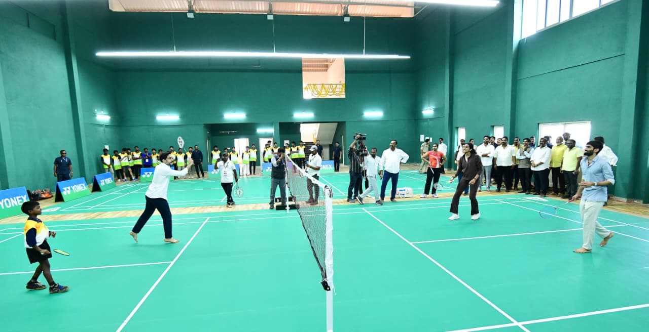 తిరుపతి జిల్లా చంద్రగిరిలో క్రీడా సంబరం నెలకొంది. ముఖ్యమంత్రి చంద్రబాబు సోదరుడు, దివంగత నారా రామ్మూర్తినాయుడు స్మారకార్థం నిర్మించిన క్రీడా వికాస కేంద్రాన్ని రాష్ట్ర ఐటీ, విద్య శాఖల మంత్రి నారా లోకేశ్ బుధవారం ఘనంగా ప్రారంభించారు. చంద్రగిరి ప్రభుత్వ బాలుర ఉన్నత పాఠశాల ప్రాంగణంలో ఏర్పాటు చేసిన ఈ కేంద్రాన్ని ప్రారంభించిన లోకేశ్... ప్రముఖ బ్యాడ్మింటన్ క్రీడాకారులు పీవీ సింధు, కిదాంబి శ్రీకాంత్తో కలిసి కాసేపు బ్యాడ్మింటన్ ఆడి సందడి చేశారు.