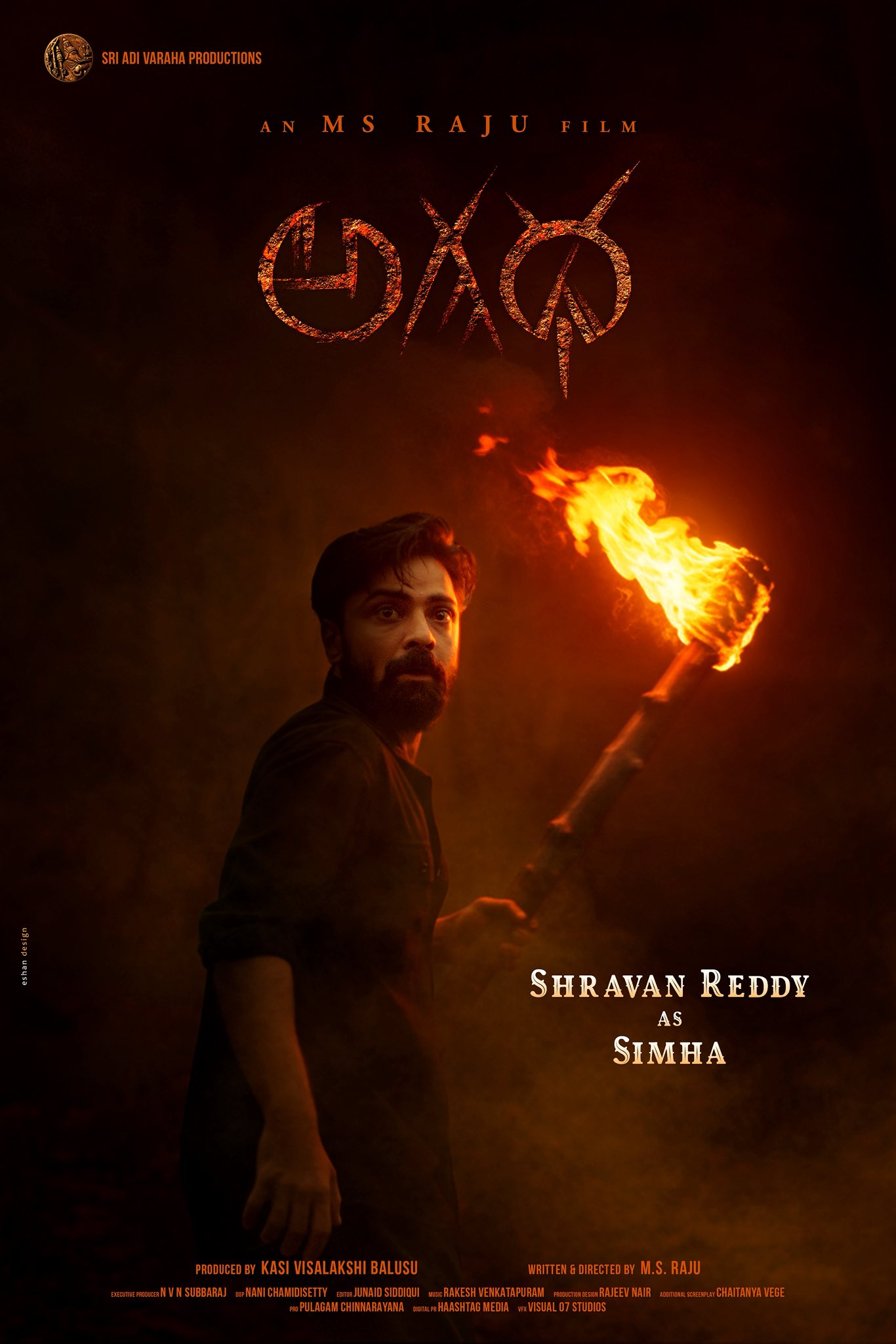ప్రముఖ నిర్మాత, దర్శకుడు ఎమ్మెస్ రాజు డైరెక్షన్ లో పాన్ ఇండియా స్థాయిలో రూపొందుతోన్న మిస్టికల్ డివైన్ థ్రిల్లర్ 'అగధ'. తెలుగు, తమిళ, కన్నడ, మలయాళ, హిందీ భాషల్లో తెరకెక్కుతున్న ఈ సినిమా నుంచి తాజాగా మరో కీలక పాత్రను పరిచయం చేశారు. ఇందులో 'సింహా' అనే ముఖ్య పాత్రలో నటుడు శ్రవణ్ రెడ్డి నటిస్తుండగా, ఆయన ఫస్ట్ లుక్ పోస్టర్ను చిత్ర బృందం విడుదల చేసింది.