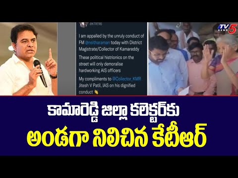Hyderabad: Telangana IT and Municipal Administration minister KTR reacted to Union Finance Minister Nirmala Sitaraman's conduct with Kamareddy district Collector. He took to his Twitter and tweeted as "I am appalled by the unruly conduct of FM @nsitharaman today with District Magistrate/Collector of Kamareddy. These political histrionics on the street will only demoralise hardworking AIS officers My compliments to @Collector_KMR Jitesh V Patil, IAS on his dignified conduct." Earlier, Union Minister Nirmala Sitaraman asked the Collector to say the Centre's share in free rice to the poor and asked him to bring the flexie of PM Narendra Modi and place it at Fair Price Shop.