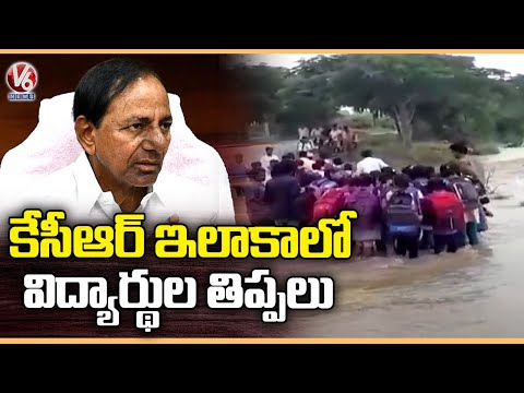 Siddipet: School students were forced to cross the flooded road in Veluru village, Wargal Mandal in Siddipet. Ironically, the area falls in the constituency of Chief Minister K Chandrashekar Rao (KCR). According to the reports, a few students from Sitarampalli are studying in a government school in Veluru. It is said that the students faced trouble crossing the flood-inundated road between Veluru and Sitarampali and the locals helped them to cross the road. It is learnt that there is no other alternative to reach Sitarampalli and the villagers and parents of the students are demanding to construct a bridge over the stream