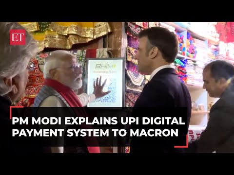 PM Modi explains UPI system to French President Macron outside local shop in Jaipur