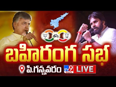 Chandrababu, Pawan Kalyan Praja Galam Public Meeting at P. Gannavaram- Live