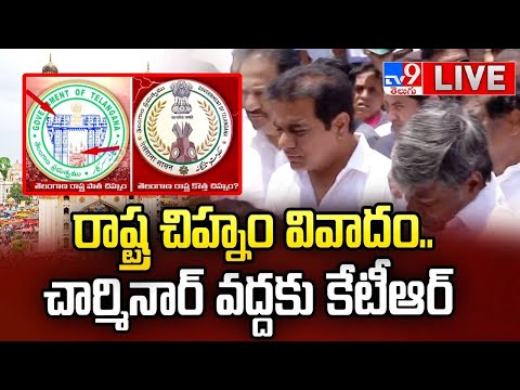 LIVE: KTR protests at Charminar over state emblem issue